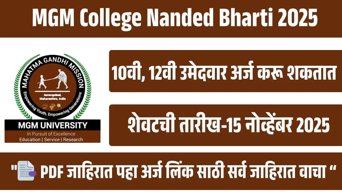 MGM College Nanded Bharti 2025 – 21 रिक्त पदांसाठी नोकरीची संधी