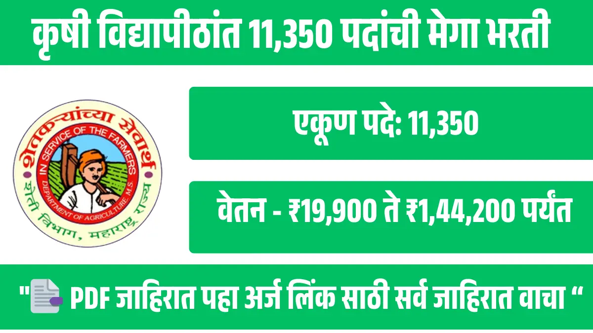 खुशखबर! लागा तयारीला कृषी विद्यापीठांत 11,350 पदांची मेगा भरती