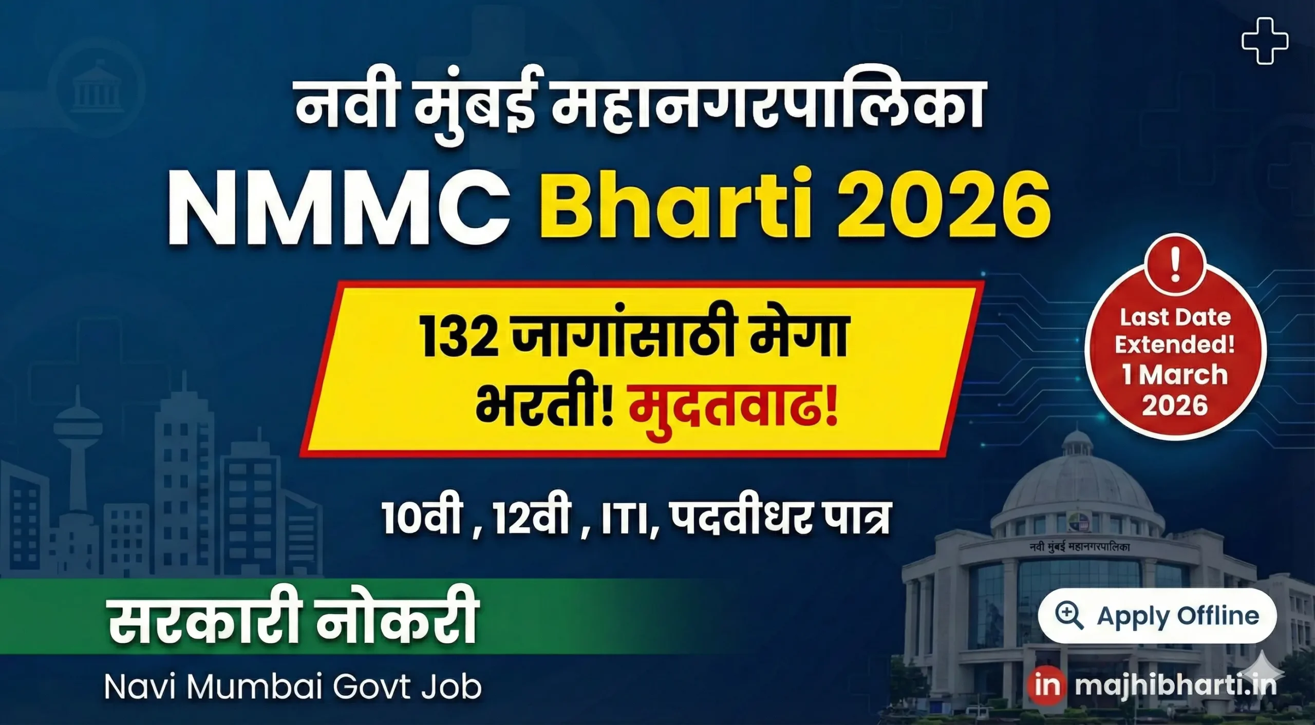 NMMC Bharti 2026: नवी मुंबई महानगरपालिकेत १३२ जागांसाठी भरती; अर्ज करण्यासाठी मिळाली ‘मुदतवाढ’, त्वरित करा अर्ज!