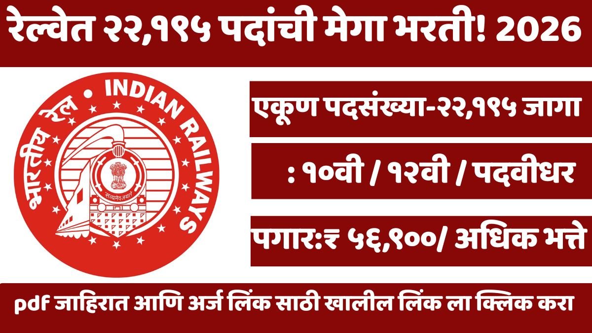 RRB Group D Bharti 2026: रेल्वेत २२,१९५ पदांची मेगा भरती! १०वी आणि ITI पास उमेदवारांना सरकारी नोकरीची सुवर्णसंधी