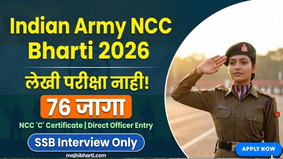 Indian Army NCC Special Entry Scheme 2026: भारतीय सैन्य दलात अधिकारी होऊन देशसेवा करण्याचे स्वप्न पाहणाऱ्या तरुणांसाठी आणि विशेषतः NCC कॅडेट्ससाठी एक सुवर्णसंधी चालून आली आहे. भारतीय सैन्याने NCC Special …