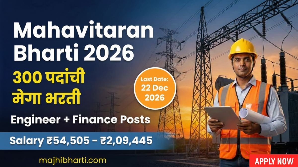 Mahavitaran Recruitment 2026: महाराष्ट्र राज्य वीज वितरण कंपनी लिमिटेड (MSEDCL) मध्ये अभियंता आणि वित्त विभागात करिअर करण्याची सुवर्णसंधी उपलब्ध झाली आहे. महावितरणने एकूण ३०० रिक्त पदांसाठी मोठी भरती जाहीर केली …