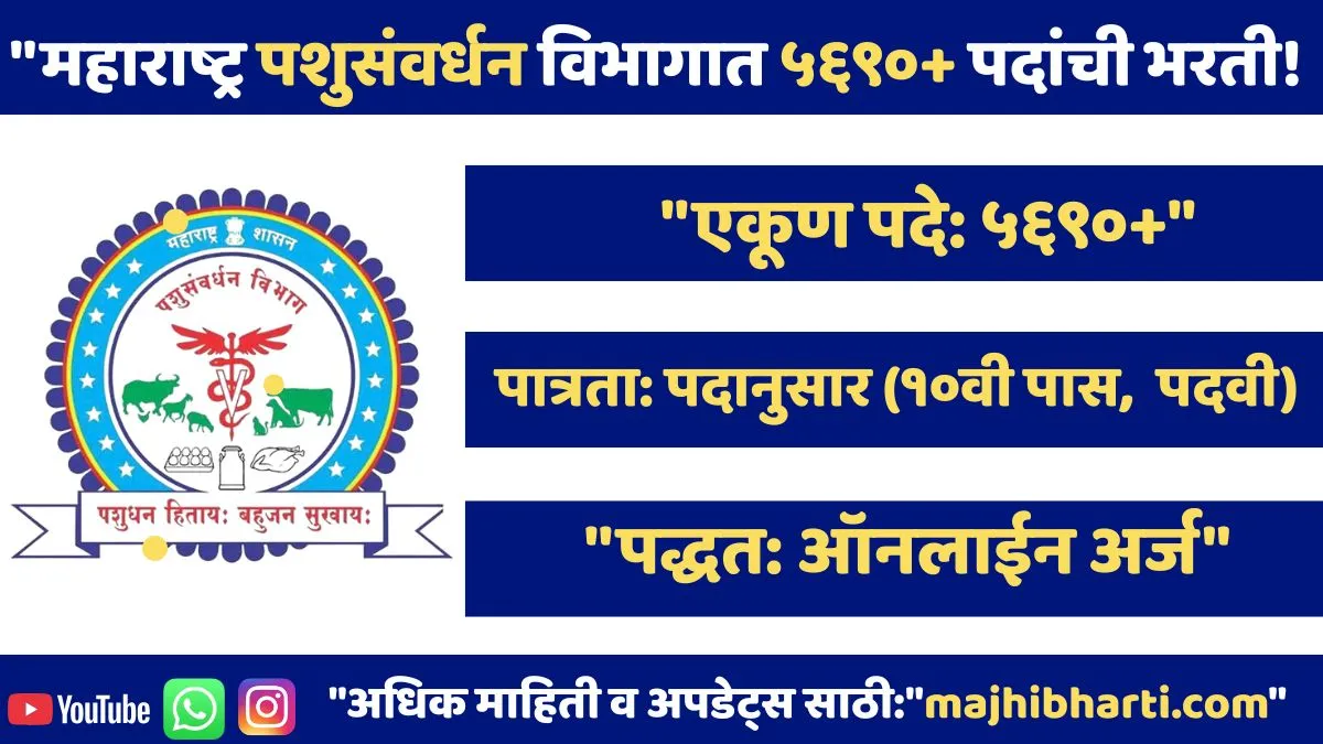 नमस्कार विद्यार्थी मित्रांनो! majhibharti.com च्या एका अत्यंत महत्त्वाच्या आणि विशेष रोजगार बातमीमध्ये तुमचे स्वागत आहे. आज आपण अशा एका भरती प्रक्रियेबद्दल सविस्तर चर्चा करणार आहोत, जी केवळ बेरोजगारांना नोकरी देणारी नाही, तर महाराष्ट्रातील लाखो शेतकरी बांधवांना आणि त्यांच्या मुक्या जनावरांना जीवदान देणारी ठरणार आहे.